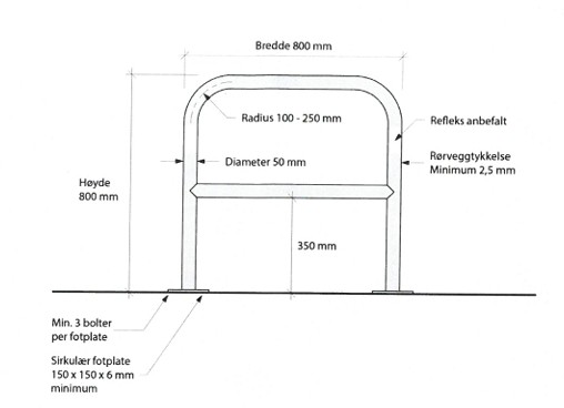 Forankres i bakken med bolter og sirkulær fotplate